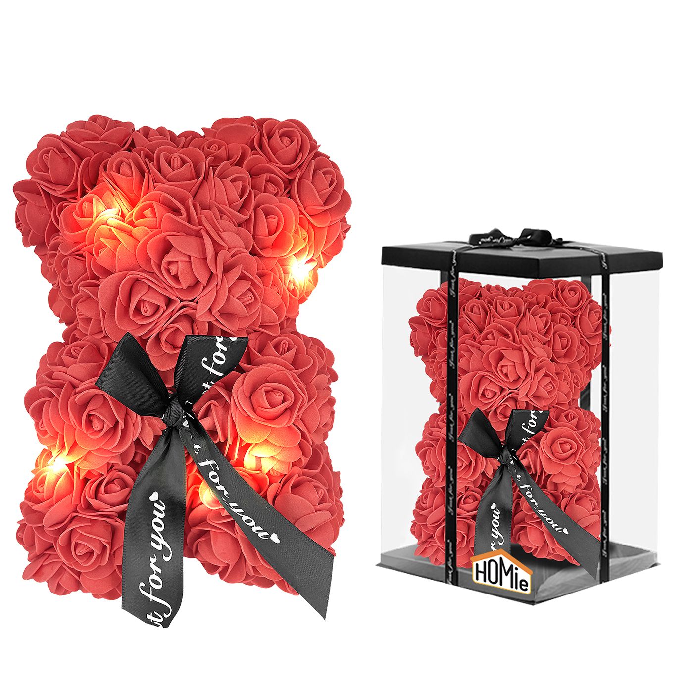 Αρκουδάκι από τεχνητά τριαντάφυλλα Rose Bear και φως, σε εντυπωσιακή συσκευασία δώρου. Ένα ρομαντικό και πρωτότυπο δώρο για να δείξετε την αγάπη σας σε άτομα που την αξίζουν.