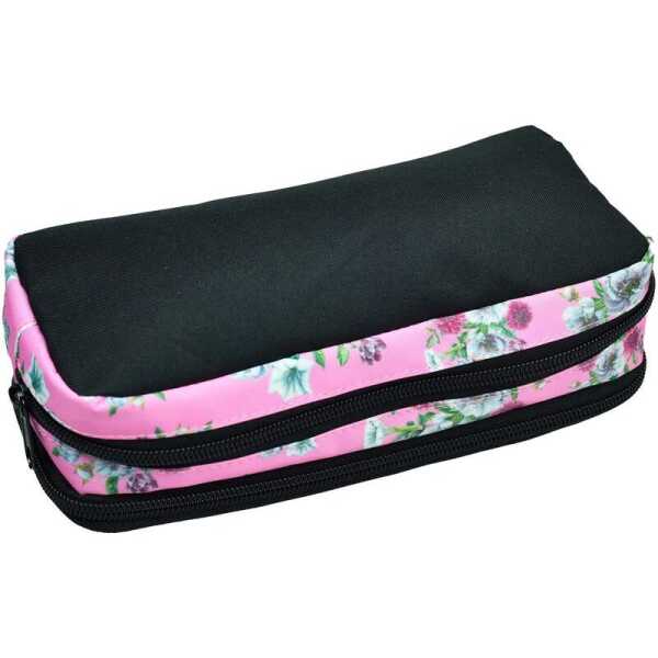 Κασετίνα βαρελάκι σχήματος οβάλ με μία κεντρική θήκη με επιπλέον μπροστινή θέση οργάνωσης και επένδυση με φόδρα.