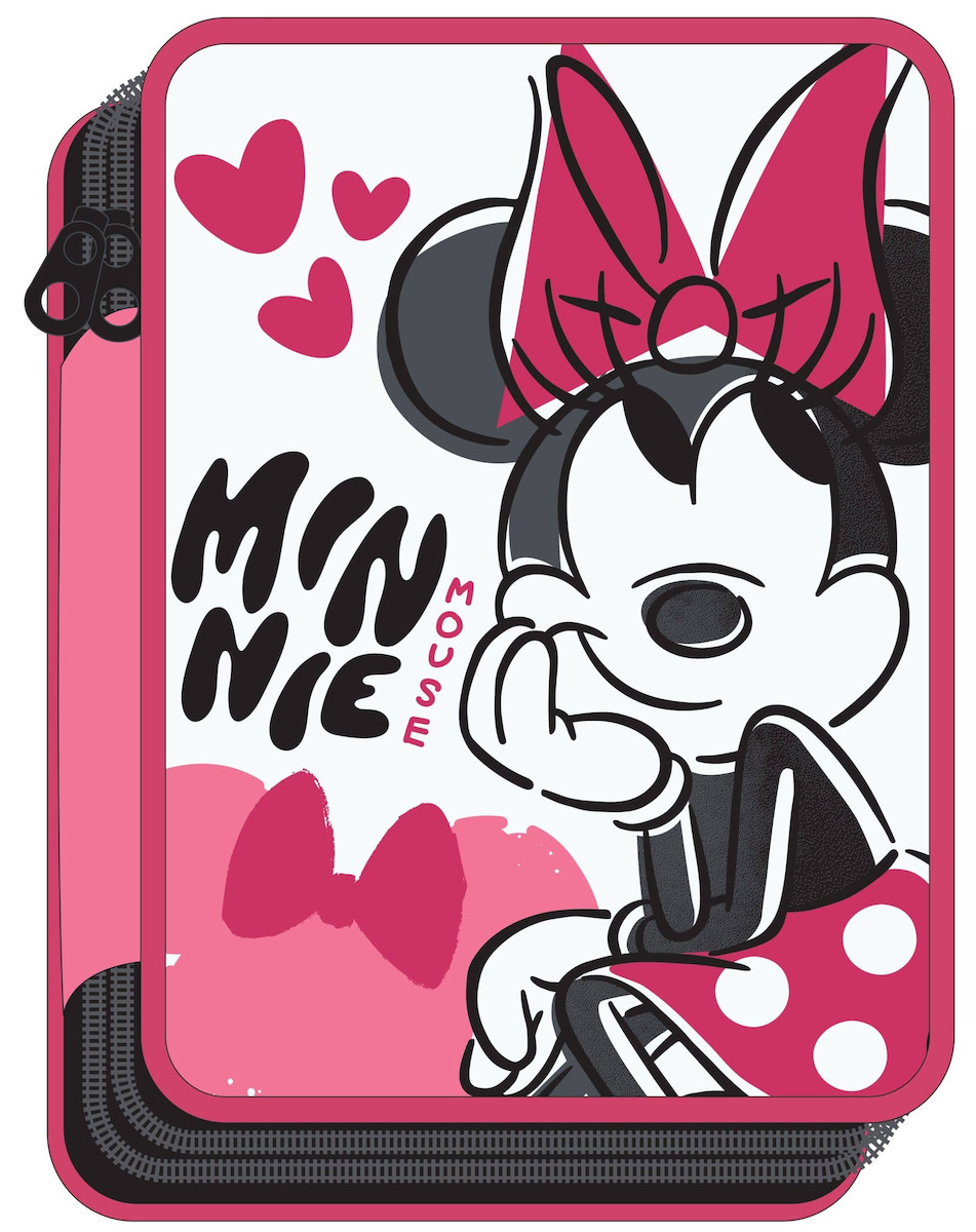 Τετράγωνη κασετίνα από ύφασμα της Gim δύο θέσεων, με φερμουάρ και σχέδιο Minnie.