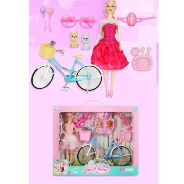 Κούκλα Μανεκέν 28cm Με Ποδήλατο, Σκυλάκια, Γυαλιά Και Αξεσουάρ