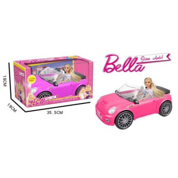 Κούκλα Μανεκέν Bella 28cm Με Ροζ Αυτοκίνητο