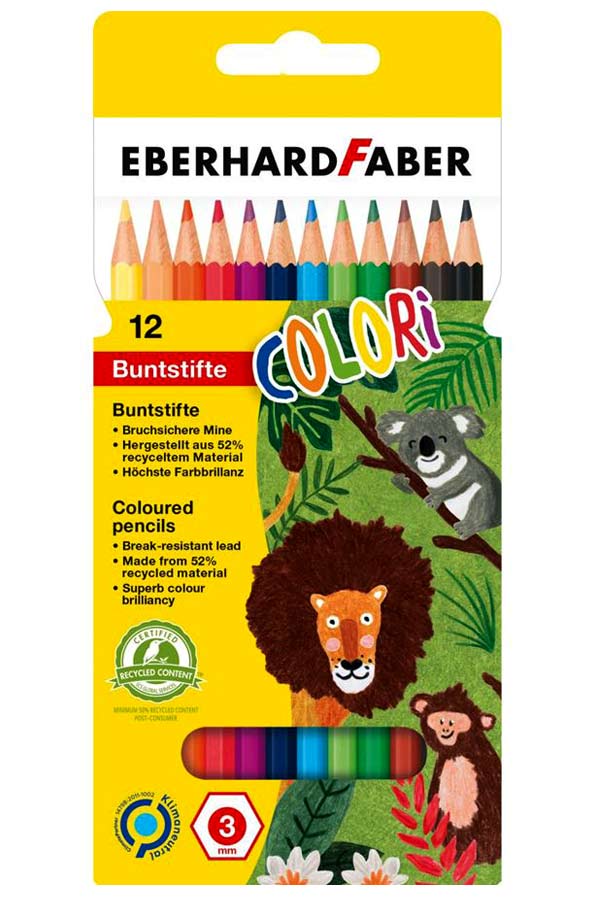 Ξυλομπογιές σε σετ 12 χρωμάτων με έντονα ζωηρά χρώματα από την εταιρία EBERHARD FABER. Έχει μύτη γραφής με υψηλή αντοχή, εργονομικό πολύγωνο σχήμα που είναι εύκολο στο ξύσιμο.