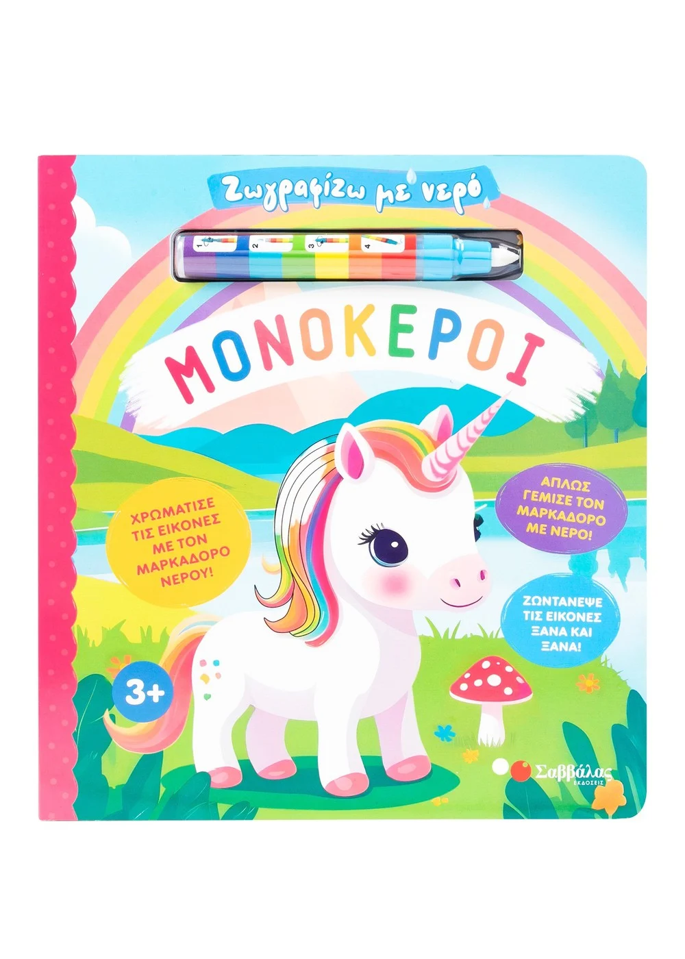 Γέμισε απλώς τον μαρκαδόρο με νερό και άρχισε να χρωματίζεις τις εικόνες. Δες τα χρώματα να εμφανίζονται με τρόπο μαγικό! Όταν στεγνώσει το νερό, μπορείς να χρωματίσεις και πάλι τη σελίδα ξανά και ξανά! Το ιδανικό βιβλίο για να μάθεις να ζωγραφίζεις χωρίς λεκέδες!